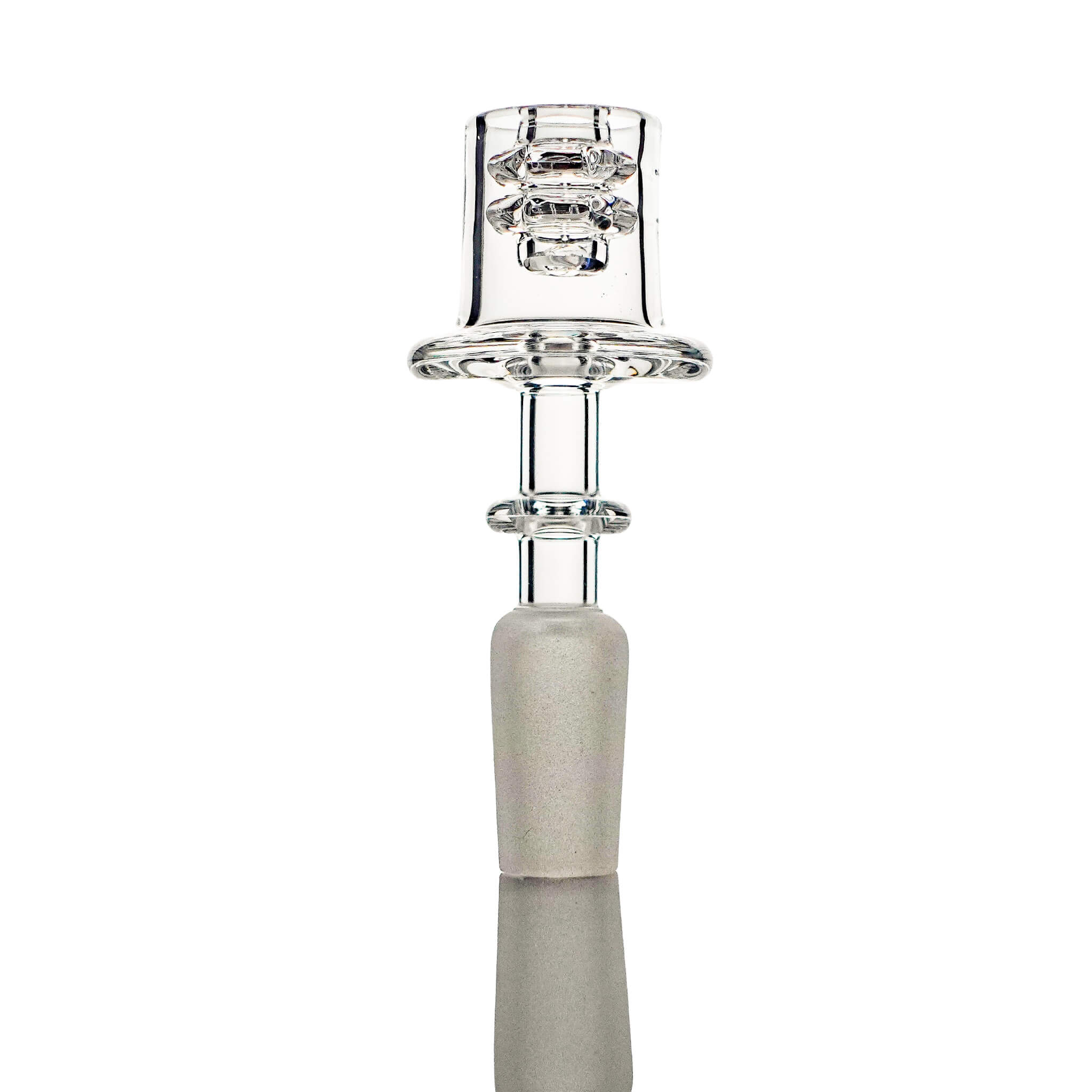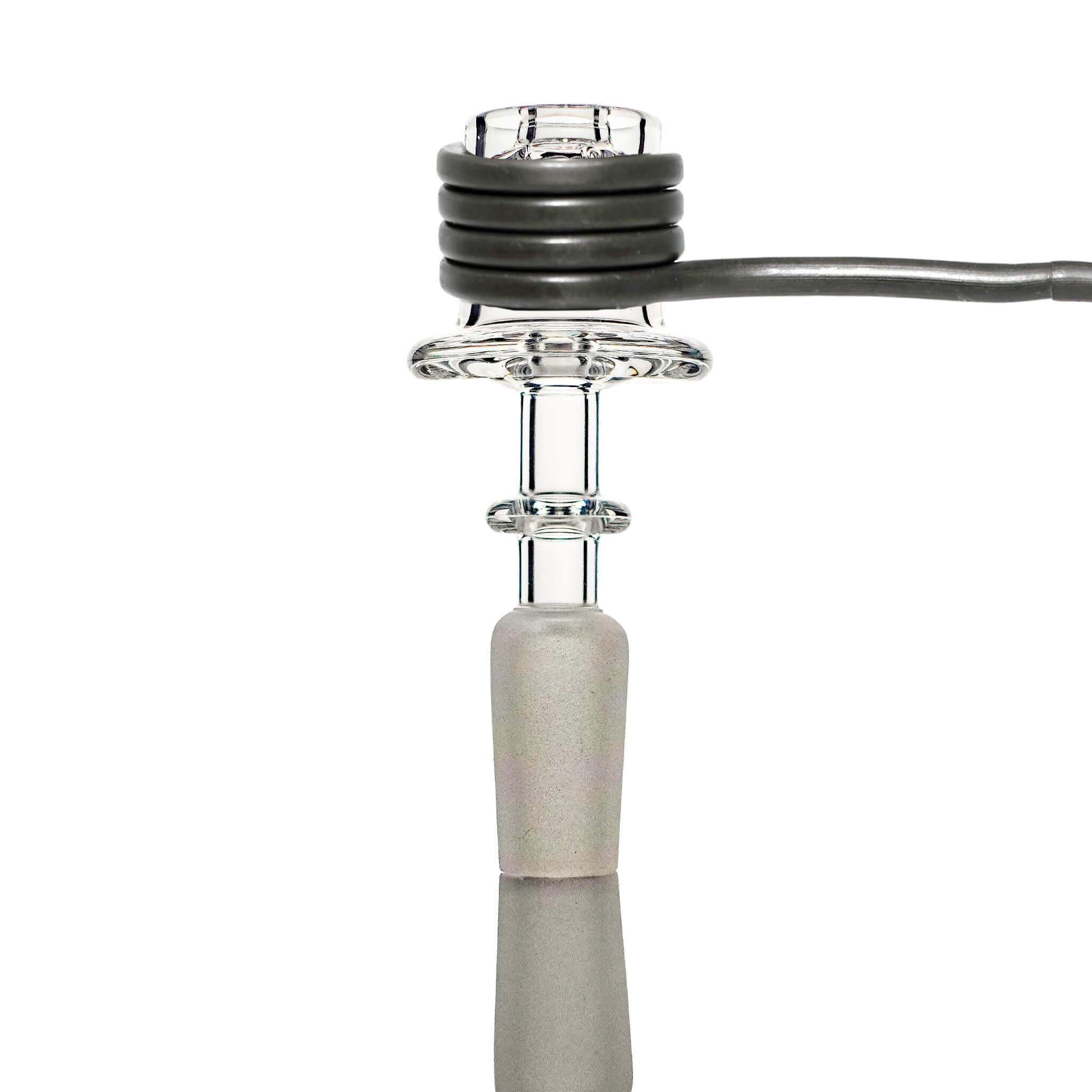 This e-banger will work with our 20mm coil heaters. Slide the coil heater cage over the top, and let it rest in place; it will heat up both stacked diamond knots. Deposit your wax on top, and it will trickle down the heated diamond knots, vaporizing as it goes. Enjoy a fun, multi-stage hit as gravity and heat work together to create big, smooth clouds!